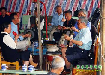 圍鼓(含嗩吶)。又稱打鎦子、打排鼓,是民間紅白會中不可缺少的樂器。一般7人演奏,樂器有一鼓、一大鑼、一公鑼、兩副鈸、兩嗩吶。其詞曲紅白會通用,以鼓和嗩吶上系紅、白布為分別標記(結(jié)婚不打四字鈸曲)。史傳的圍鼓詞有《撩子》、《火鋪》等,《撩子》分《一二三》、《閃翅》、《堆羅漢》、《反落花》等十章,《火鋪》也分《三槍》、《四進門》、《八哥洗澡》、《蓮魚吐絲》等十章,嗩吶詞有《八十正宮》調(diào)等。在農(nóng)村,圍鼓是最普及的樂器,每逢紅白喜事都有圍鼓和嗩吶表演。