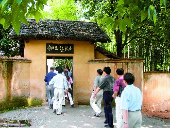 在彭總故居西頭的三間橫屋里,是彭總光輝一生的輔助陳列室。這里陳列著60多張圖片和50多件文物,其中有彭總在廬山會(huì)議期間呈送的“萬(wàn)言書(shū)”復(fù)制件。這些照片和文物向人們講述著彭總光輝壯烈的一生。