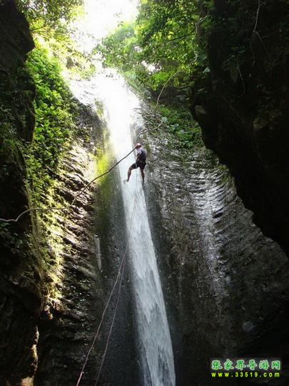 【千年古藤】已經(jīng)游覽過張家界國家森林公園黃石寨六奇閣的朋友都知道,張家界有“六奇”,那就是山奇、水奇、石奇、云奇、動物奇、植物奇。在我們張家界大峽谷風景區(qū),您將全方位的欣賞和感受張家界的“六奇”,也就是張家界的六大奇怪之物在張家界大峽谷都有很好的展現(xiàn)?,F(xiàn)在,請您轉(zhuǎn)過身來,再次朝左邊的石壁上望過去,您會發(fā)現(xiàn),一根千年古藤的枝枝蔓蔓幾乎遍布了大半個石壁。通過我們的準確測量,古藤的主干直徑達到38公分,宛若姑娘的小蠻腰,足足見證了1000余年的風雨滄桑。您說,這算不算一奇?!而且,在石壁的右面,還有一根古藤,當?shù)乩习傩罩v,右邊的這一根是公藤,左邊的這一根是母藤。
