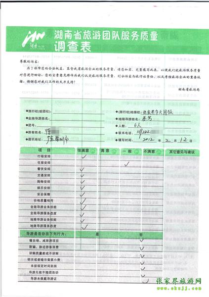 2012年2月12日陳小姐一行6人旅游質(zhì)量反饋