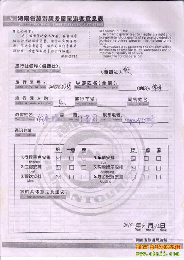 - 2011年10月26日張小姐一行18人旅游質量反饋 [10482]