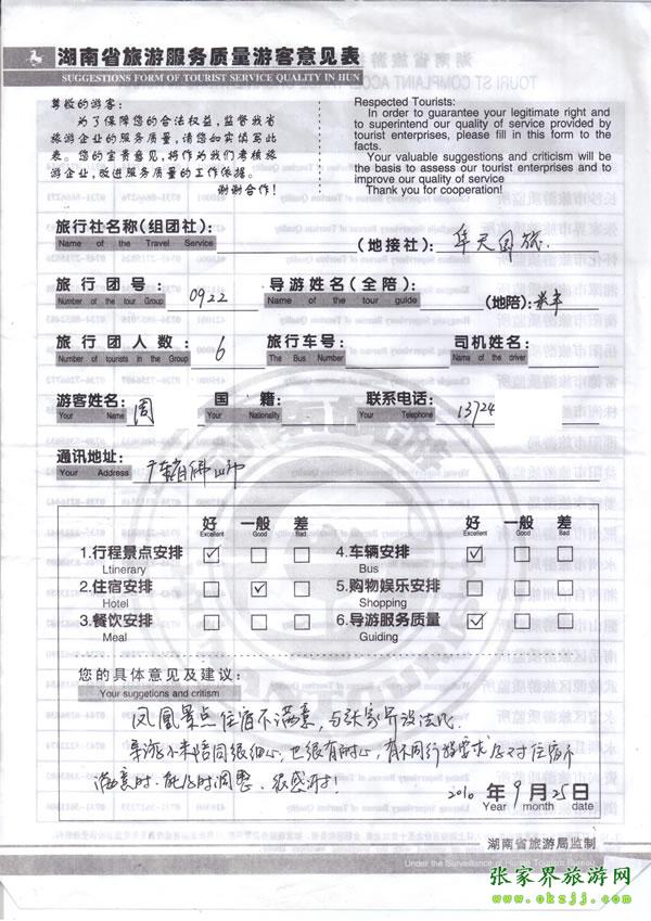 廣東佛山市周先生9月22日參團反饋表