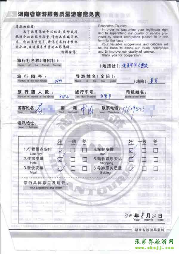 2010年8月20李先生一行13位旅游質(zhì)量反饋