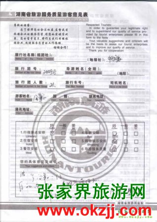 2010年5月27日余先生一行2位旅游質(zhì)量反饋
