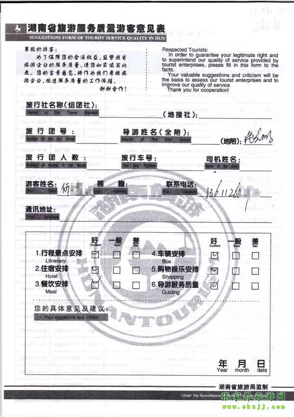 2010年10月22日何先生旅游質(zhì)量反饋