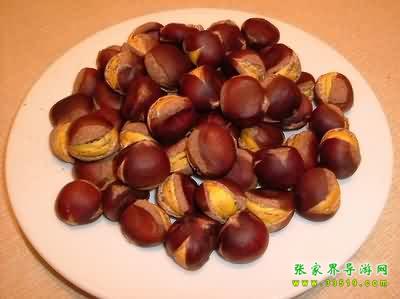 板栗與尖栗(俗名“漩栗”),山毛櫸科,是木本植物,主要含淀粉、糖等,在武陵源區(qū)各景區(qū)都有廣泛的分布。它們是多年生落葉喬木,一般樹高3至5米到10米左右。栗樹春末夏初開花,夏天生長,秋天結(jié)實。果實成球形,外殼帶刺,里面栗子光滑成紫色,所以農(nóng)家有“娘被千針衫,兒穿紫龍袍”的謎語。板栗成熟以后,外殼便自然張開,栗子隨風(fēng)脫落。如在板栗林里撿栗子,倒是一大樂趣。“白露”過后,板栗大量成熟,滿樹的栗球都張開了笑口,一遇到颯颯吹來,栗子便唏唏唰唰唰隨風(fēng)脫落,滾進(jìn)山溝里或低洼處,如果運(yùn)氣好,可以撿到一窩一窩的板栗,有時可以撿幾十斤。