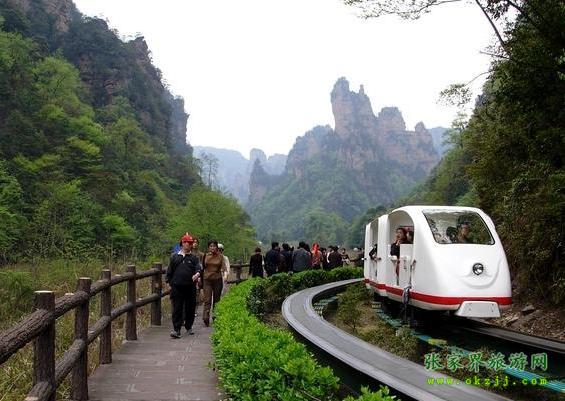 在十里畫廊盡頭。這里怪石嶙峋,林木蔥籠,常有三五成群成百上千只猴子在此會集,故稱猴子坡。游人至此,或樹叢之中,或山間古道,常見群猴在懸崖絕壁上攀援嬉戲,有的盲目在藤蔓上攀跳,有的獨坐巖石抓耳搔腮。惹得游人眉開眼笑,興味無窮。 從南天門向?qū)γ嫱?,可見三座瘦削石峰,形如美女,婷婷玉立,故?ldquo;三女峰”。三女峰尤以第三峰奇妙,于石峰胸部有一直徑約1米乳眼, 由孔中可窺山后天光,既像高懸在石壁上的明鏡,又像少女佩帶著一枚晶瑩透明的玉飾。 過南天門繼續(xù)登山約200注,有一岔道口,叫月亮埡, 往右便是天子山石家檐景區(qū),向右斜上則通天臺。天臺海拔1020米,有東西兩個觀景臺。東臺為一懸空巨石,四周雜樹叢生,古松倒掛,是觀日出的理想之所。西臺俯視西海最妙,但見幽深莫測的峽谷中,千峰聳立,戴翠披綠,秀麗的景色盡覽眼底。 十里畫廊觀光小火車票價:單程30元/ 人,雙程40元/人。優(yōu)惠門票價格單、雙程由現(xiàn)行每人次14元和19元調(diào)整為18元和24元。 優(yōu)惠政策規(guī)定:根據(jù)有關(guān)文件規(guī)定,十里畫廊觀光電車門票價格對身高不足1.2米的兒童實行免費;對身高1.2米至1.5米的未成年人實行優(yōu)惠;對24歲以下學生憑學生證享受優(yōu)惠;符合《殘疾人實用評定標準》的殘疾人、60周歲以上老人、現(xiàn)役軍人、烈士直系家屬、持有民政部門頒發(fā)的《城鄉(xiāng)居民最低生活保障金領(lǐng)取證》的人員憑有效證件享受優(yōu)惠;此外可在特定日期對特定群體(如教師節(jié)對教師、建軍節(jié)對軍人等)實行減免優(yōu)惠。 湖南唯一一家全國百強國際旅行社、湖南五星級旅行社:華天國際旅行社 品牌卓著,信譽度高,是游客理想選擇接待單位。