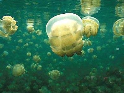 4.帕勞群島巖石島 水母湖 即便是潛水的“老手”也表示,在這里的體驗是其潛水生涯中“最不可思議的經(jīng)歷”。湖中水母成群,但它們不會刺人,潛水者可以與水母一同暢游,或者捧起它們觀賞,完全不必?fù)?dān)心會受傷。